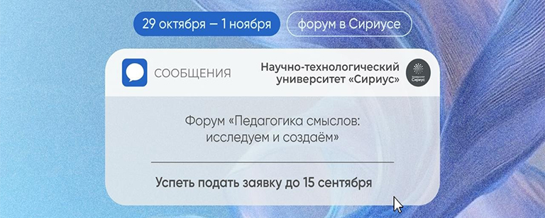 До 15 сентября открыт приём заявок на форум «Педагогика смыслов: исследуем и создаём», который пройдёт с 29 октября по 1 ноября на федеральной территории «Сириус». Это мероприятие объединит педагогов, исследователей и управленцев в области школьного образования.