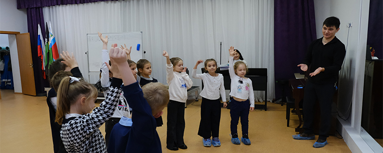 Зал наполнился живыми эмоциями и прекрасными голосами — дети исполняли песни с искренностью и радостью, раскрывая свой талант и артистизм. Андрей Баирович помог ребятам не просто спеть, а передать смысл и настроение каждой мелодии и почувствовать уверенность на сцене.