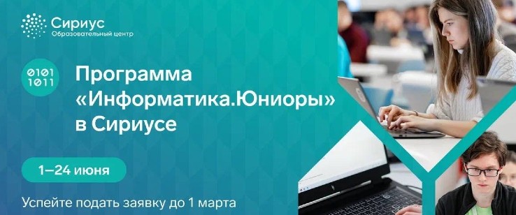 Если ты в 6–8 классе, но уже уверенно пишешь код, приглашаем на программу Образовательного центра «Сириус» — «Информатика.Юниоры».