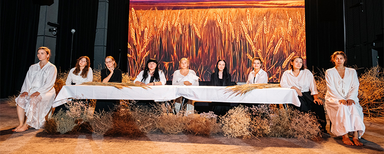 6 сентября команда представила эскиз пластического спектакля с элементами вербатима. Спектакль состоит из пяти эпизодов, каждый из которых — пластическая зарисовка, оживляющая «душу» одного из пяти сёл: Татьяновки, Ниновки, Зинаидина, Акулиновки и Анновки. Параллельно звучат рассказы реальных жительниц этих мест «Монологи основаны на рассказах реальных женщин из этих сёл. Центральным элементом постановки стал стол, за которым разыгрываются драматические сцены. Стол символизирует русское застолье на разных этапах жизни. В финале артисты собираются за ним, символизируя единение и надежду», — делится деталями эскиза Виктория Викторовна.